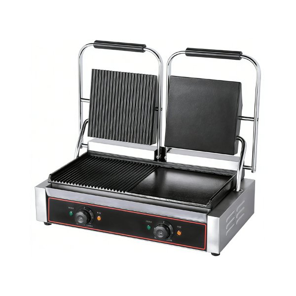 Commercial Double Plate Panini Sandwich Press Grill Machine (Half Grooved Plate, Half Smooth Plate)