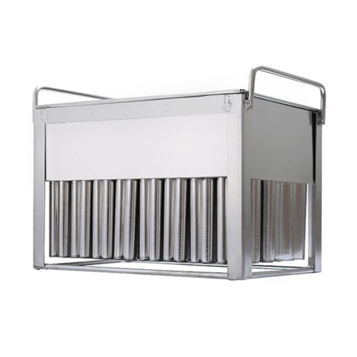 The stainless steel popsicle mold is designed for straightforward maintenance in commercial settings. The stainless steel construction facilitates thorough cleaning and supports compliance with food safety standards typically required in professional kitchens.